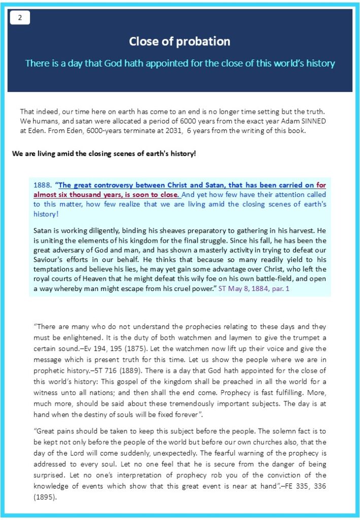 Timeline for the close of probationUncategorized / June 14, 2025 / Leave a Comment AND THE SECOND COMING OF JESUS CHRIST Download e-book Download e-book